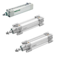 ASCO and Aventics cylinders offer easy mounting, sturdy design with a profiled barrel in hard anodised aluminium. These cylinders have a special design, specifically designed to easily cater for magnetic position indicators. The high performance, self-lubricating bearing and non-abrasive scraper seal ensure precise rod guidance. This product is available in bore sizes of 32mm, 40mm, 50mm, 63mm, 80mm and 100mm and comes in stroke sizes of between 25mm and 1000mm as standard (with custom stroke lengths available on request). We can have any cylinder from this range manufactured within 24 hours!